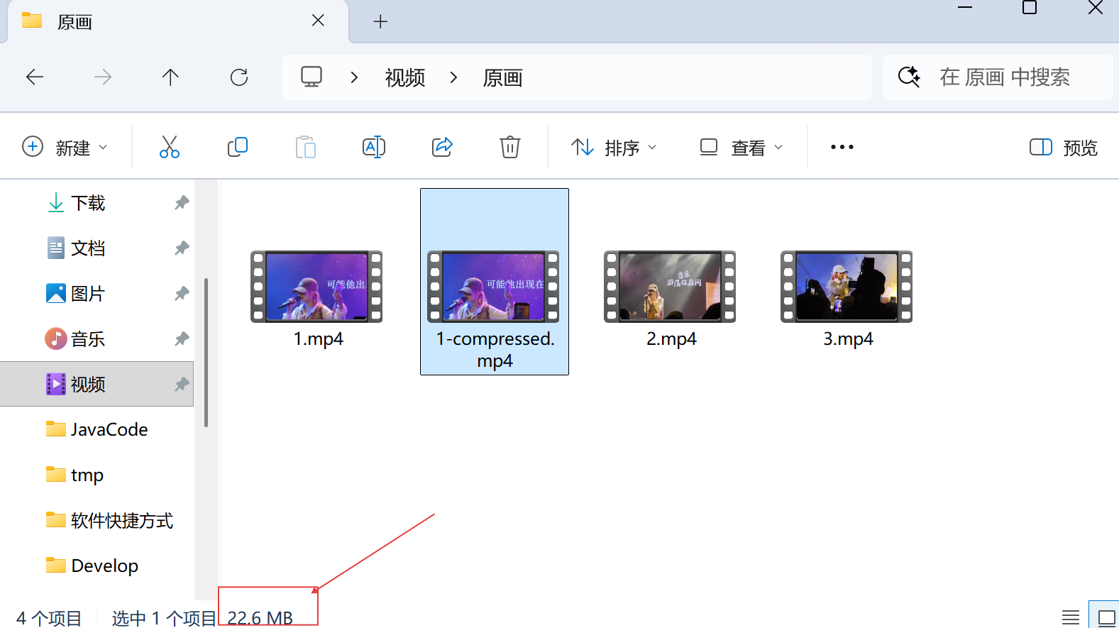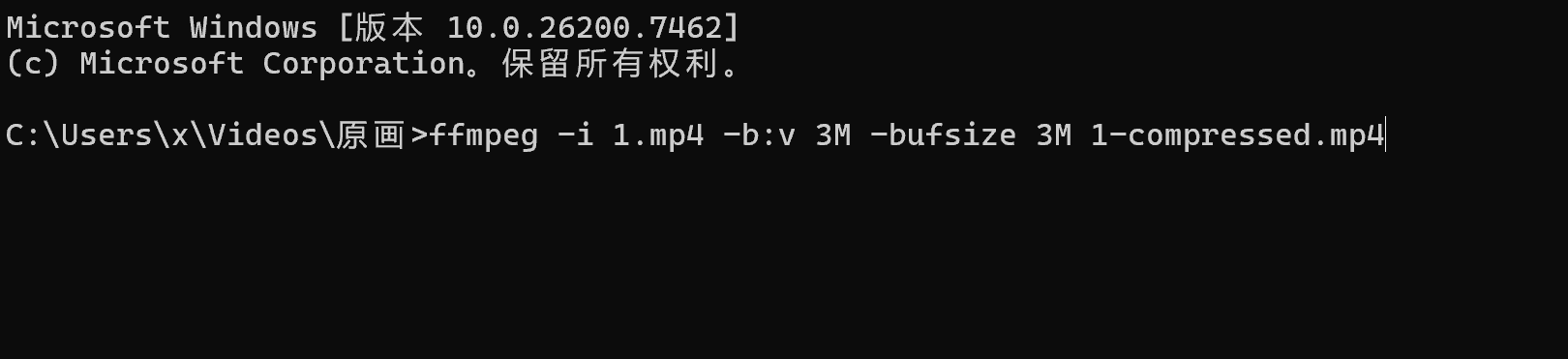 场景:将 1.mp4 压缩为更小体积的 1-compressed.mp4